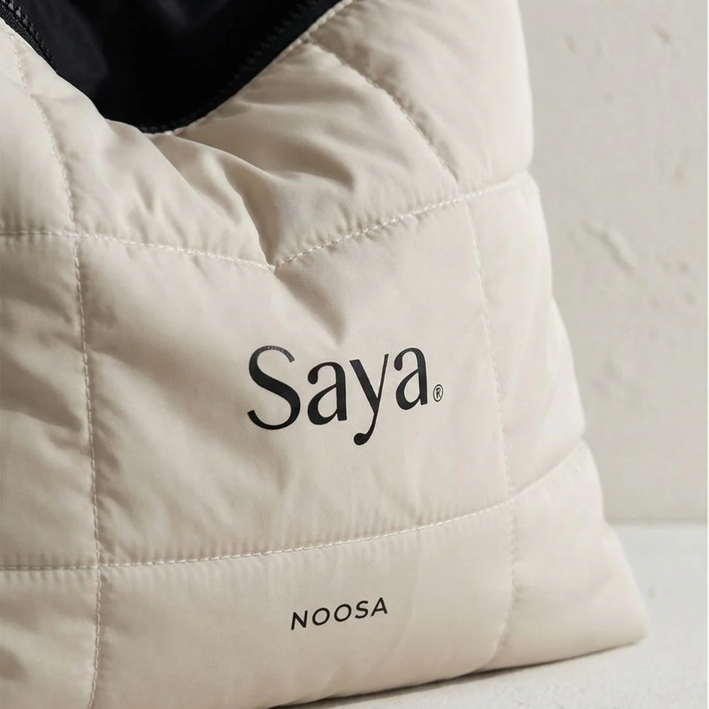 Designed for versatility, it features a durable metal zipper with a branded Saya pull tag, padded polyester fibre filling for a soft yet structured feel, and generous space that fits your skincare, toiletries, beach essentials, or everyday items. Lightweight and easy to pack, it’s the ideal companion for beach days, travel, gym days, weekend escapes and daily organisation.